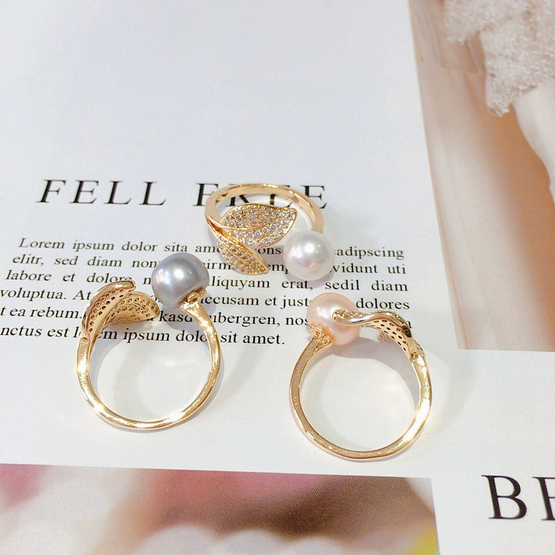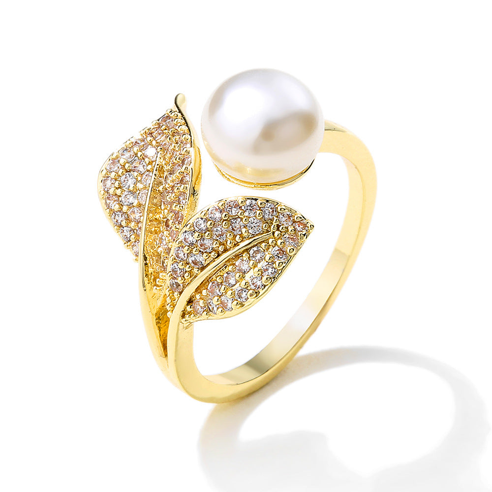 A tribute to nature‘s quiet majesty, the Stardew Laurel ring captures the moment dew meets dawn. Crafted from 18K gold-plated brass, this elegant piece features a luminous freshwater pearl (8.5mm–9mm) nestled between two leaf-shaped accents encrusted with sparkling clear gemstones. The leaves curve gracefully around the pearl, creating a botanical silhouette that evokes laurel branches kissed by starlight.